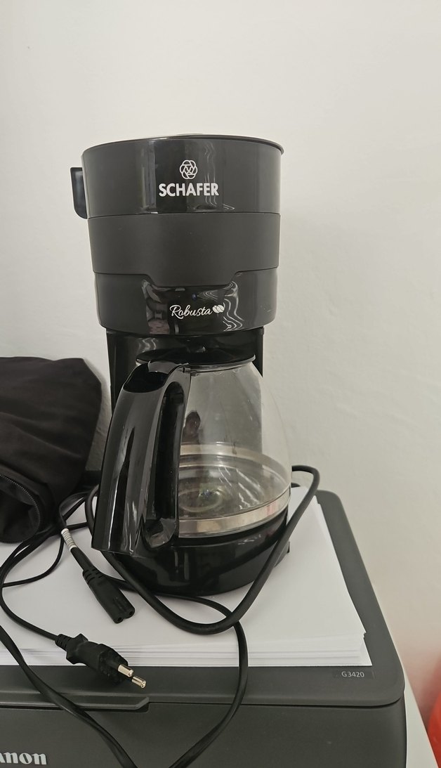 Siyah renkte Schafer Robusta kahve makinesi, sağlam tasarıma sahip, cam sürahisi ve kullanımı kolay kontrolleri bulunur. Modern ve şık görünümlü. ☕ kahve koyulan kısımın filtresi kahverengine döndü biraz birkqö kez kullanıldı sorunsuz