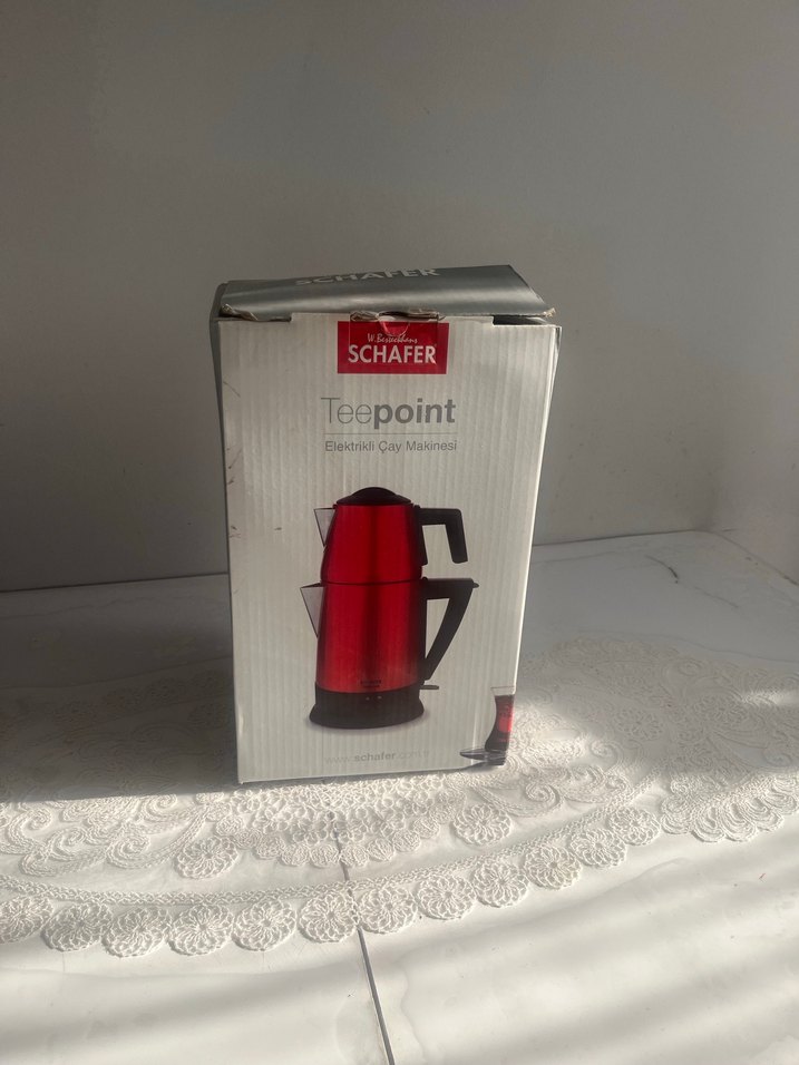 Schafer Teepoint elektrikli çay makinesi, kırmızı gövde ve gri kulp ile şık ve işlevsel bir tasarıma sahiptir. ☕