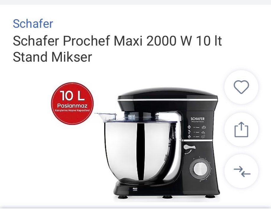 Parlak beyaz renkli mutfak mikseri, büyük metal karıştırma kabı ve çeşitli aparatlarla donatılmıştır. Hız ayar düğmesi bulunmaktadır.