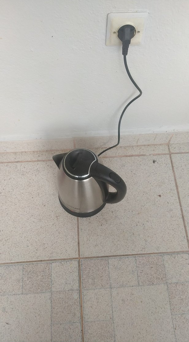 Gri renkli, paslanmaz çelik gövdesi ve siyah kulp ile kapağa sahip elektrikli su ısıtıcısıdır. Hızlı su kaynatma için uygundur. çalışıyor sorun yok 1,7 litre ,temiz