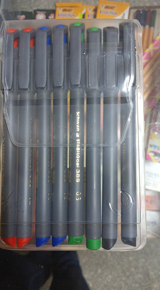 Schwan & Stabilo 0.5 mm uç kalem seti, koyu renkli çoklu kapaklı 8kalem içerir. Plastik kutuda, hassas yazı ve çizim için uygundur. ️
