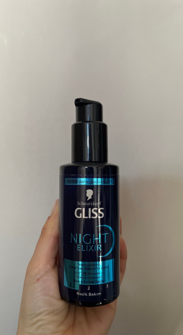 Schwarzkopf Gliss Night Elixir, normal saçlar için nazik bakım sağlayan besleyici bir saç serumudur.