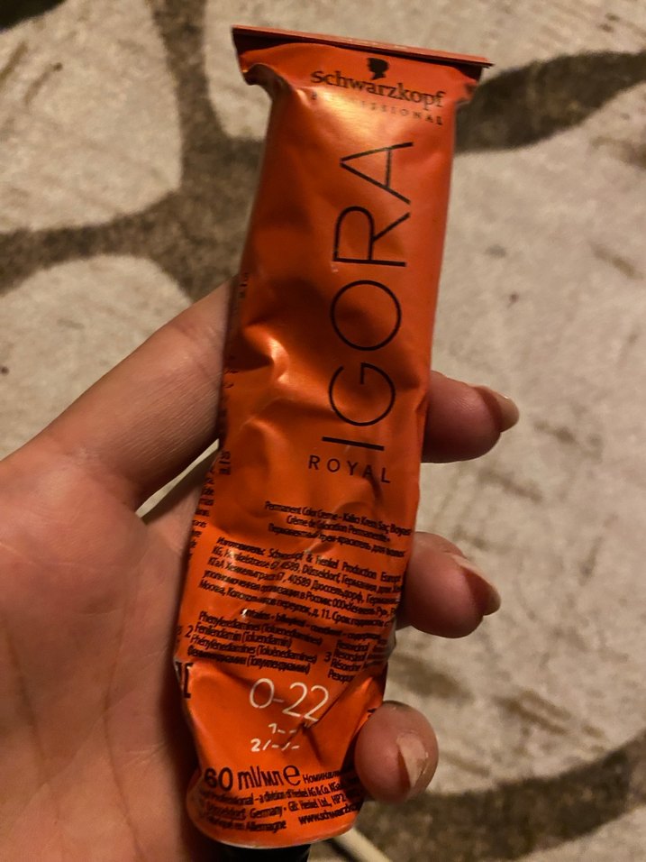 Schwarzkopf Igora Royal saç boyası, 80 ml tüp içinde, 0-22 renk numarası. Kalıcı ve zengin pigmentli renk sağlar. Az kullanılmıştır. Bir sorunu yoktur.