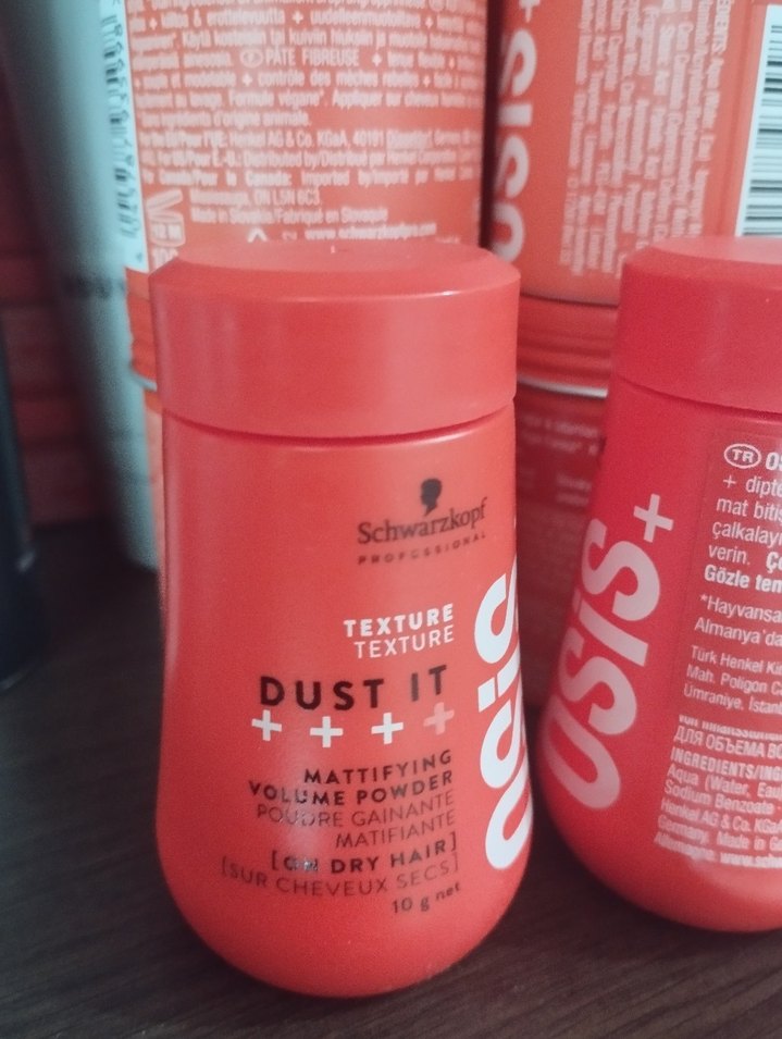 Schwarzkopf Osis+ Dust It saçlar için matlaştırıcı hacim tozudur. Kuru saçlarda doğal mat görünüm ve hafif tutuş sağlar.