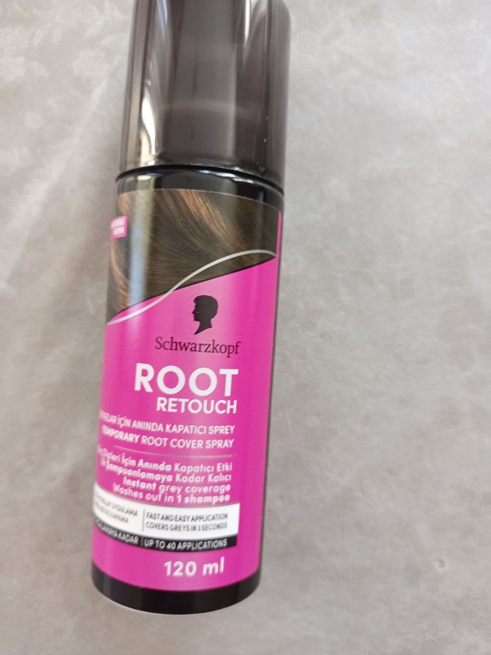 Schwarzkopf Root Retouch, anında gri kapama sağlayan ve şampuanla yıkanan geçici kök kapama spreyidir. Kolay uygulama ve 40 kullanıma kadar etkilidir.