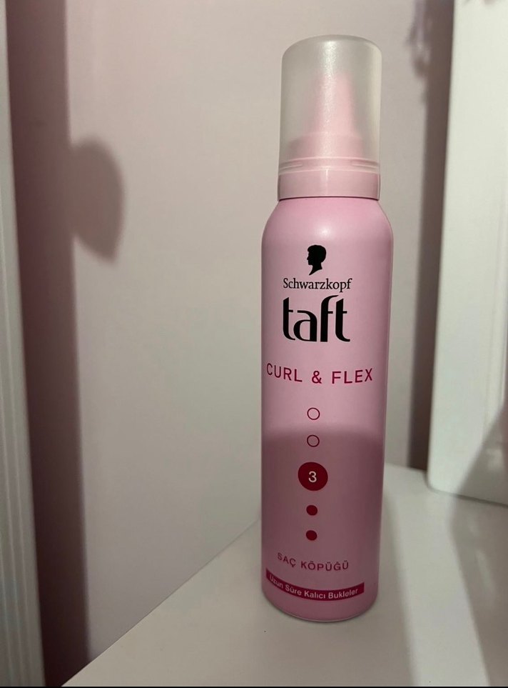 Schwarzkopf Taft Curl & Flex saç köpüğü, 3 numara güçlü esnek tutuş sağlar, bukleleri şekillendirir ve uzun süre korur.