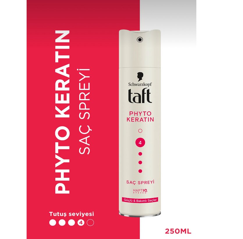 Schwarzkopf Taft Phyto Keratin saç spreyi, keratin bakımıyla güçlü tutuş sağlar. 4. seviye tutuş ile saç stilini korur ve besler. 250ml. ♀️