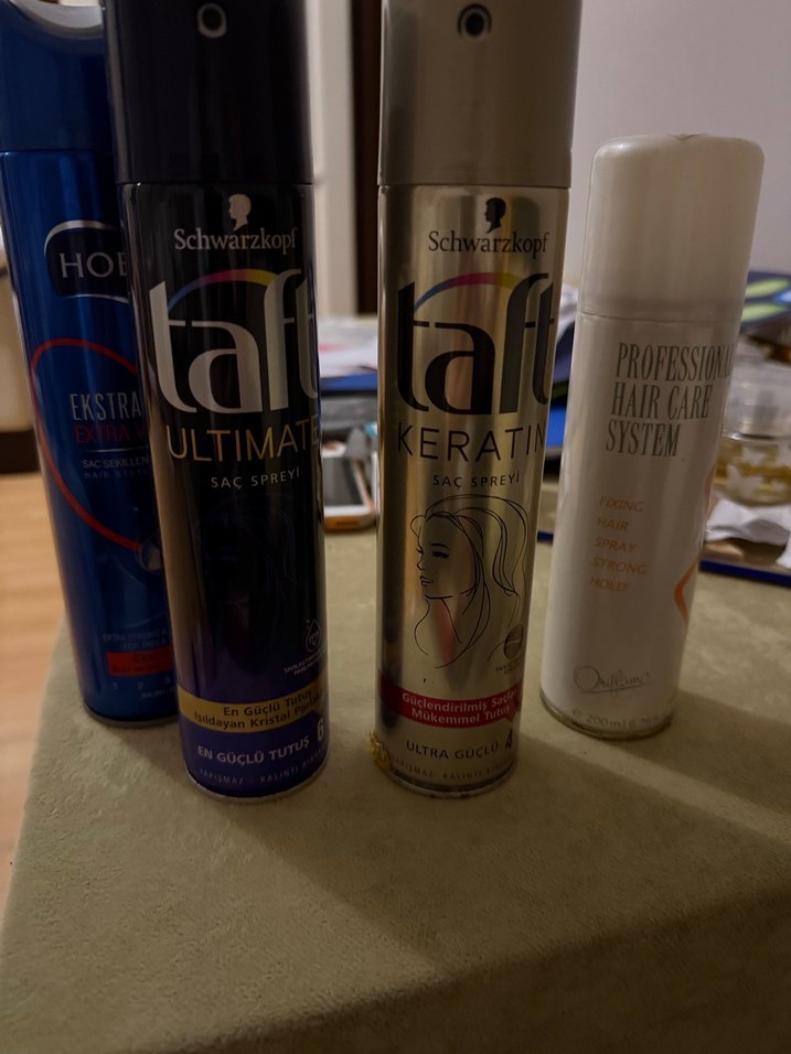 Schwarzkopf Taft Ultimate ve Keratin saç spreyleri güçlü tutuş ve bakım sağlar. Profesyonel saç bakım spreyi ile stil desteği sunar. ♀️son resım içinde az var hedıye edecegım ılk resımdekılerı az kullanıldı