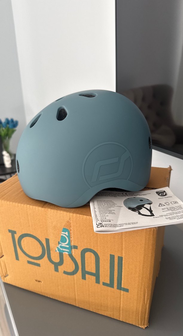 Mavi renkli, baskılı desenli plastik motosiklet kaskı. Rock punk havası ve rahat şıklığı bir arada sunar, havalandırma delikleri bulunur. ️scoot and ride markasıdır. Hiç kullanılmamıştır