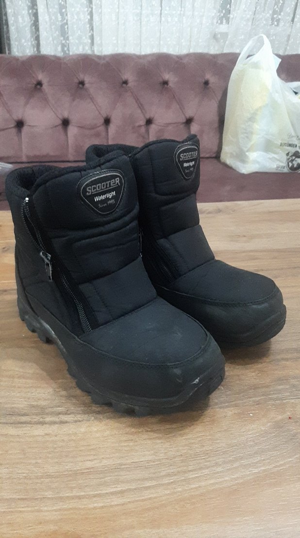 Scooter marka siyah erkek outdoor botları, kauçuk tabanlı ve fermuarlı, rahat ve şık kar botu tarzında günlük kullanıma uygun.36 numara
