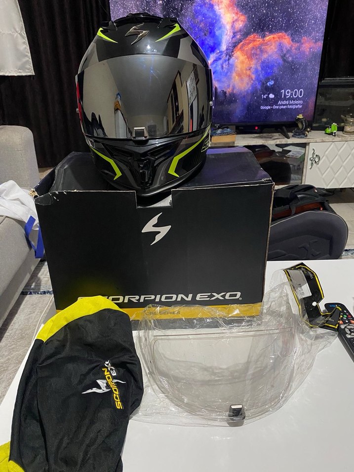 Eşimin kaskıdır. L bedendir. Üzerinde orjinal vizör ve ayrıyeten 2250 tl ye alınan aynalı vizörü yanında vereceğim. İki vizörede uyumlu orjinal pinlock vardır. Çok belli olmayan belli belirsiz kılcal çizikler mevcut. Airları hatasız çalışıyor. İç pedleri sağlamdır. 4 ay civarı kullanıldı.