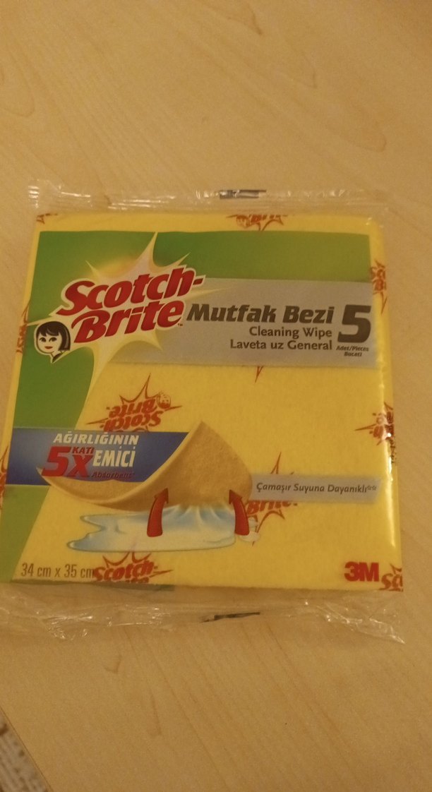 Scotch-Brite markalı, sarı renkte 5'li mutfak bezi paketi. Yüksek emicilik ve dayanıklılık sağlar.