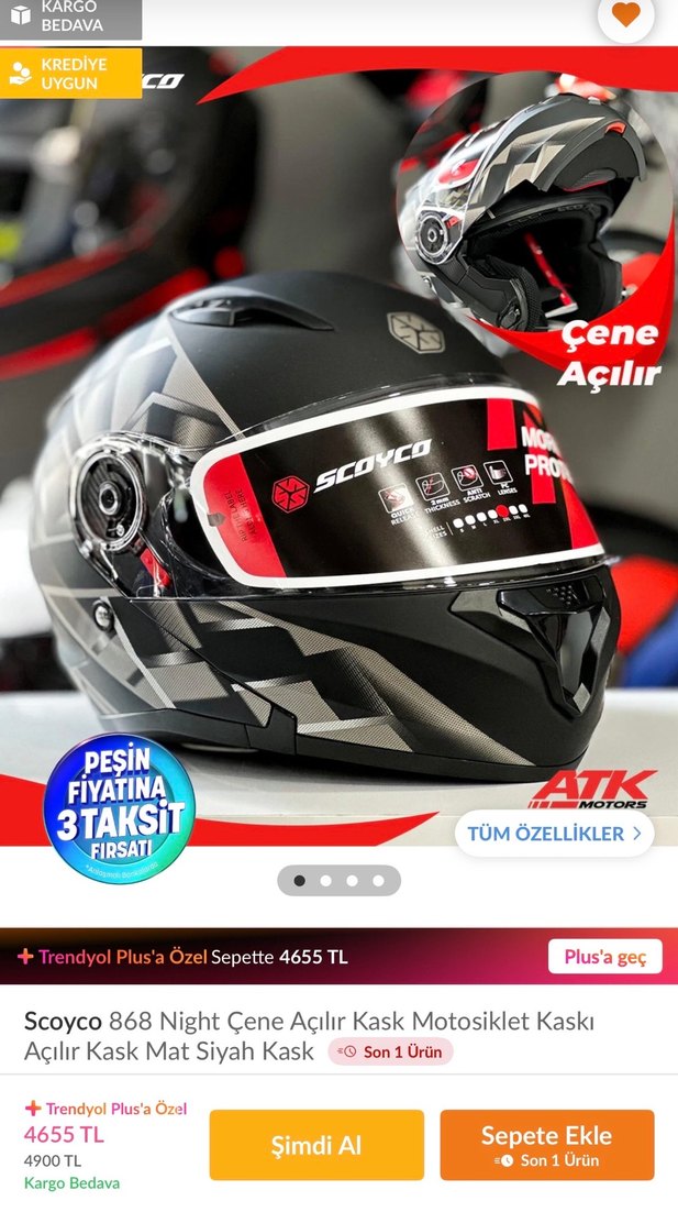 Scoyco 868 Night motosiklet kaskı, mat siyah renkli. S bedendir. Başka bir kaska geçeceğim için satıyorum. Temiz kullanılmıştır. İstenirse fotograf ekleyebilirim. Alıcısına hayırlı olsun