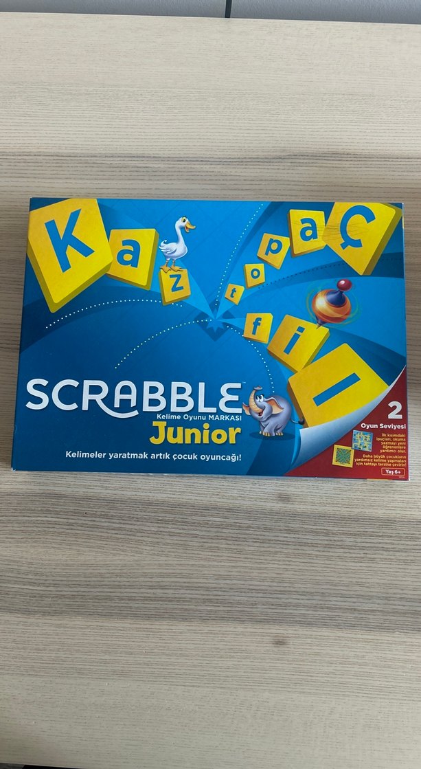 Scrabble Junior, çocukların kelimeler oluşturmasını sağlayan parlak mavi renkte bir masa oyunudur. İki oyun seviyesi içerir. Tüm parçaları tamdır