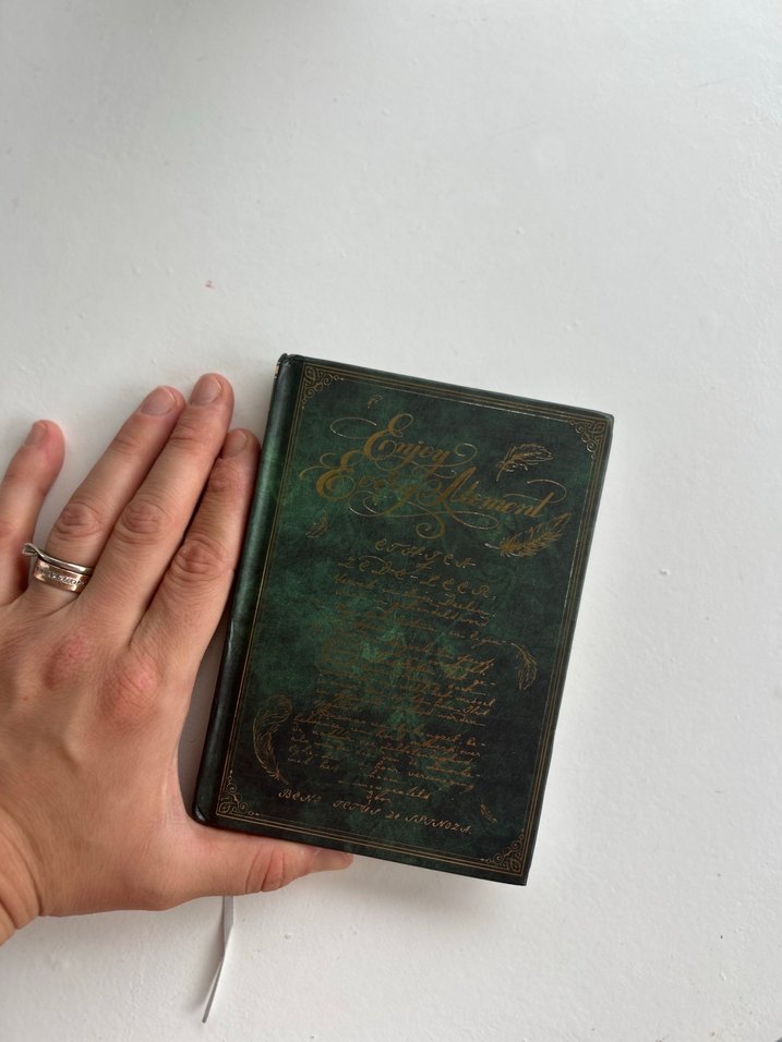 Koyu yeşil renkli, klasik tasarımlı ve altın yaldızlı yazılarla süslenmiş şiir kitabı. Küçük boyutuyla elde rahat taşınır. 15-11 cm.