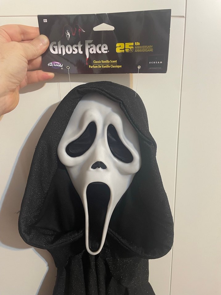 Klasik vanilya kokusuna sahip, 25. yıl Versiyon Ghostface İkonik maske ve kapüşonlu tasarıma sahiptir. Funworld 2024 Üretim.