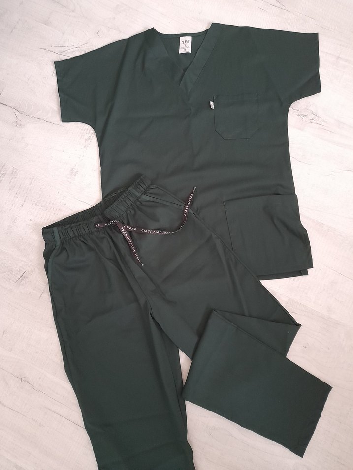 düz renk,kısa kollu,beli lastikli xs beden,koyu yeşil scrubs