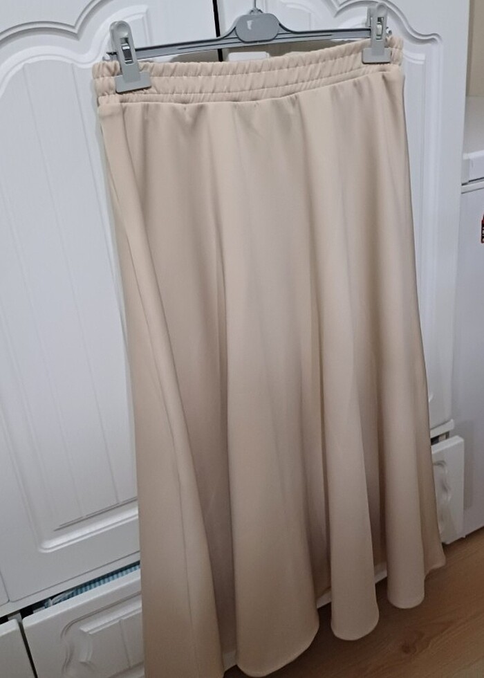 Hiç kullanılmadı kışlık iç göstermez tok kumaşıyla harika görünüyor . Rengi beyaz değil bej renktir ve 1 bedendir 38 bedene kadar olur beli lastikli.