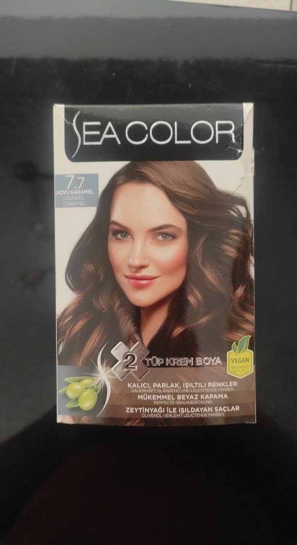 Sea Color 7.7 koyu karamel saç boyası, kalıcı, parlak ve ışıltılı renkler sunar. Mükemmel beyaz kapama sağlar ve zeytinyağı içerir.