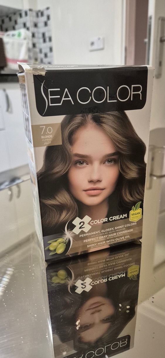 Sea Color kalıcı saç boyası kremi 7.0, parlak ve canlı renk verir. Gri saçları kusursuz kapatır. Zeytinyağı içerir ve vegandır.