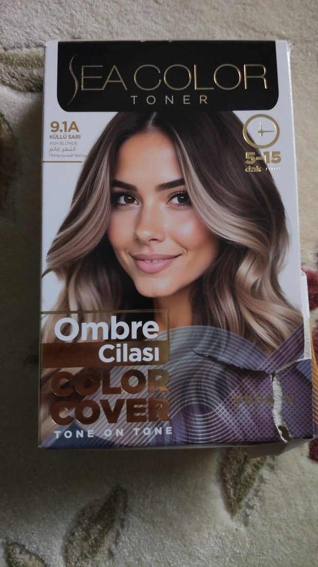 Sea Color Ombre toner, 9.1A küllü sarı tonunda, 5-15 yıkama dayanıklı ton-on-ton renk kaplama sağlar.