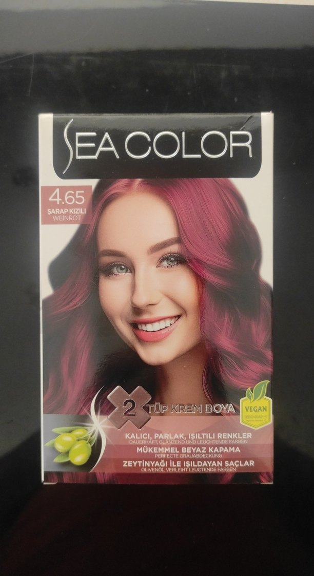 Sea Color 4.65 Şarap Kızılı saç boyası, kalıcı ve parlak renkler sunar. Mükemmel beyaz kapama sağlar ve zeytinyağı ile saçları ışıltılı yapar.