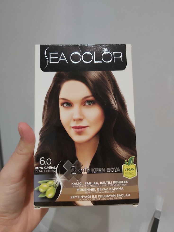 Sea Color zeytinyağlı saç boyası, kalıcı, parlak ve ışıltılı koyu kumral renk verir, mükemmel beyaz kapama sağlar.