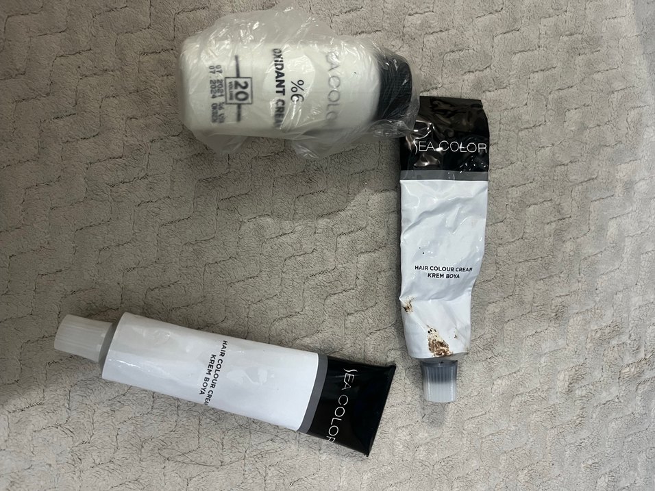 SEACOLOR siyah saç boyası. Oksidonun yarısı dolu diğer tüpün dibinde var diğeri hiç açılmamış siyaha artık bıraktığım için satıyorum. Marka temsilidir