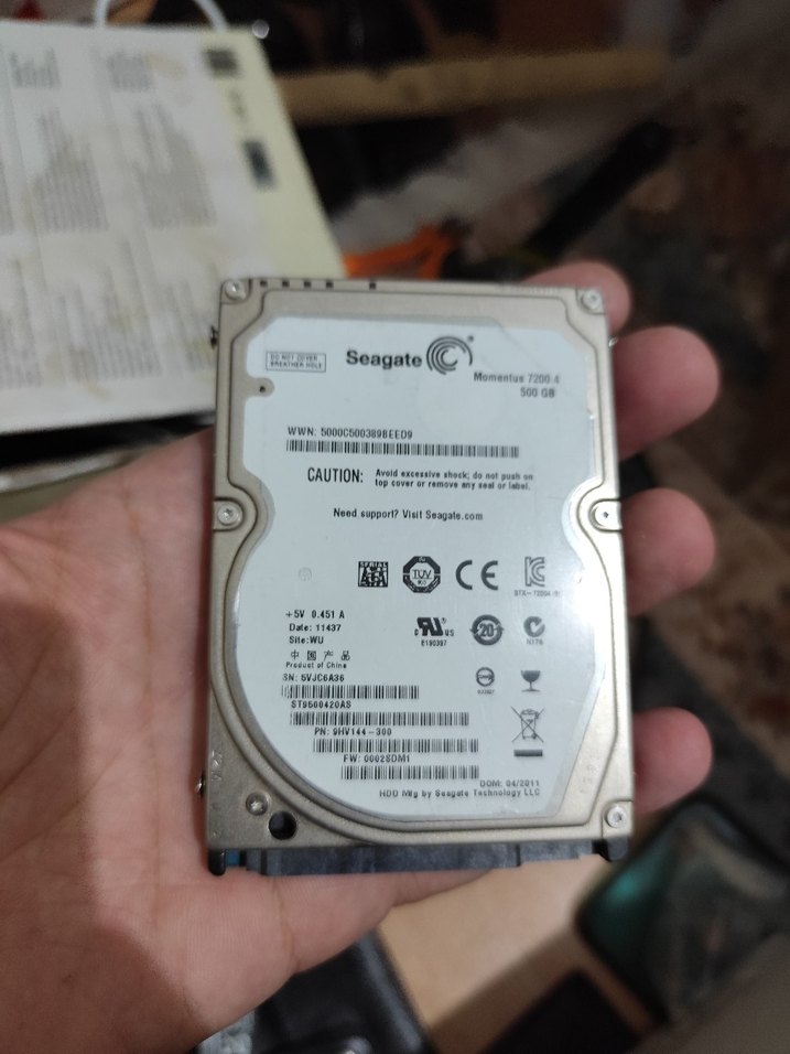 Gri ve beyaz kasalı, 500 GB kapasiteli Seagate dahili sabit disk, laptop ve küçük cihazlar için uygundur.