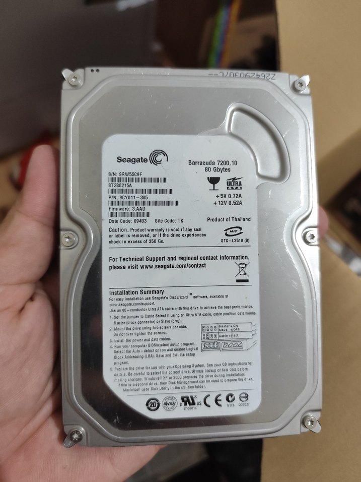 Seagate Barracuda 7200.10 sabit disk, IDE 80GB kapasite, gri ve beyaz kasa. Masaüstü depolama için uygundur. ⚙️