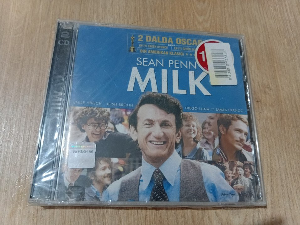 Milk filmi DVD'si, Emile Hirsch, Josh Brolin ve Diego Luna gibi oyuncuları içerir. Yeni jelatini açılmamış