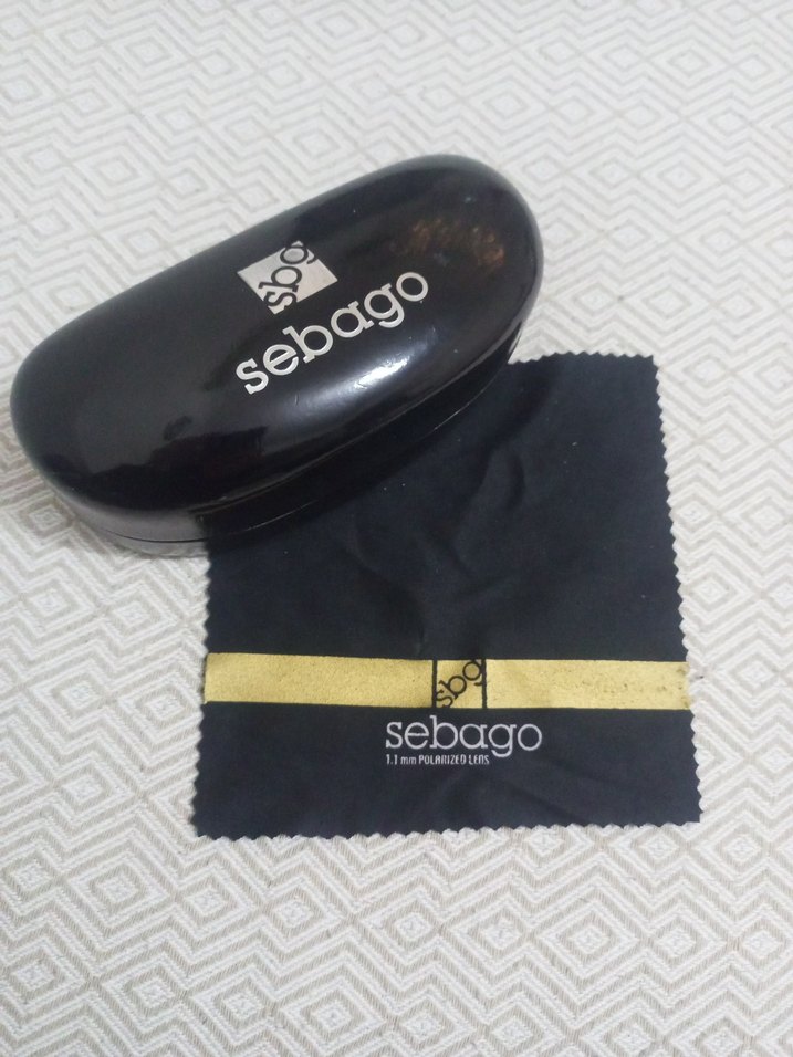 Sebago markalı, siyah kumaş üzerine parlak altın baskılı emendili, siyah gözlük koruyucu kutu ile birlikte. kutu üst iç kısmında çok hafif açıklık mevcut