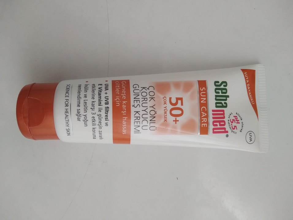 SPF 50+ ve UVA+UVB filtreleri ile çok yüksek koruma sağlar. E vitamini ve lesitin içerir, hassas cildi nemlendirir ve güneşin zararlarına karşı korur.