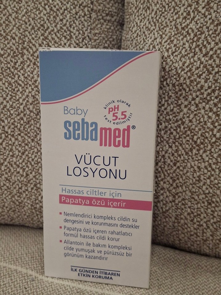 Sebamed bebek vücut losyonu, papatya özü ile hassas cildi nemlendirir ve korur, allantoin bakım kompleksi ile cilde yumuşak ve pürüzsüz görünüm kazandırır.