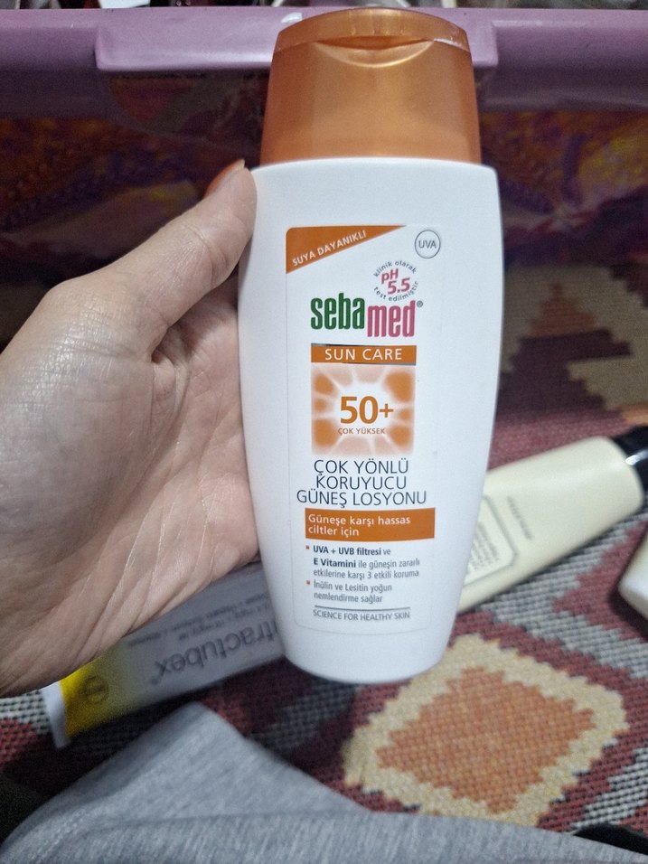 Sebamed çok yönlü koruyucu güneş losyonu SPF 50+ ile hassas ciltler için yüksek koruma sağlar. UVA ve UVB filtreleri ile vitamin E içerir. ☀️ yarısı duruyor