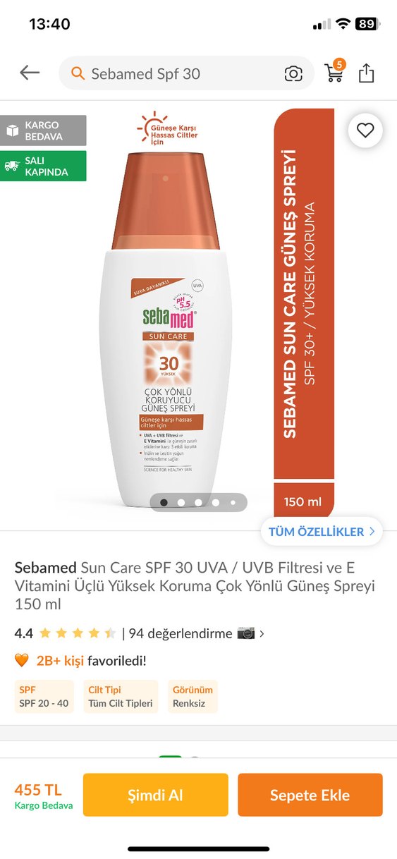 Sebamed Sun Care SPF 30, UVA/UVB filtresi ve E vitamini ile yüksek koruma sağlar. Tüm cilt tipleri için uygun 150 ml çok yönlü güneş spreyi. Sıfır ürün