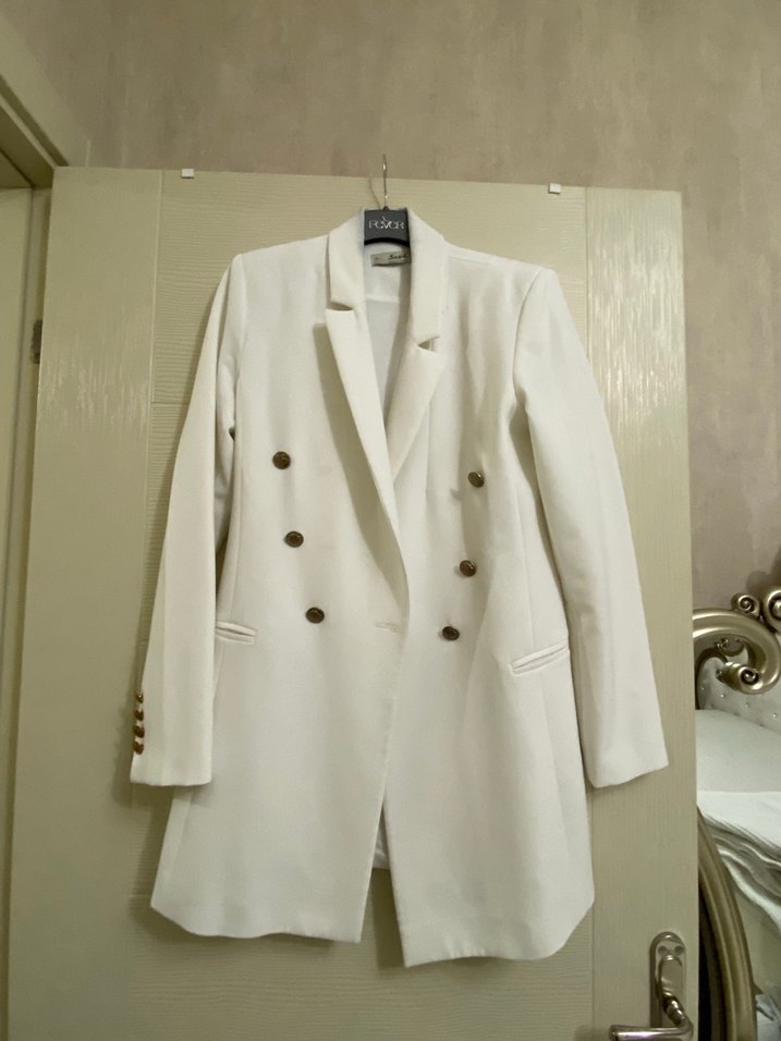 Seçil Düğmeli Beyaz Kadın Uzun Ceket