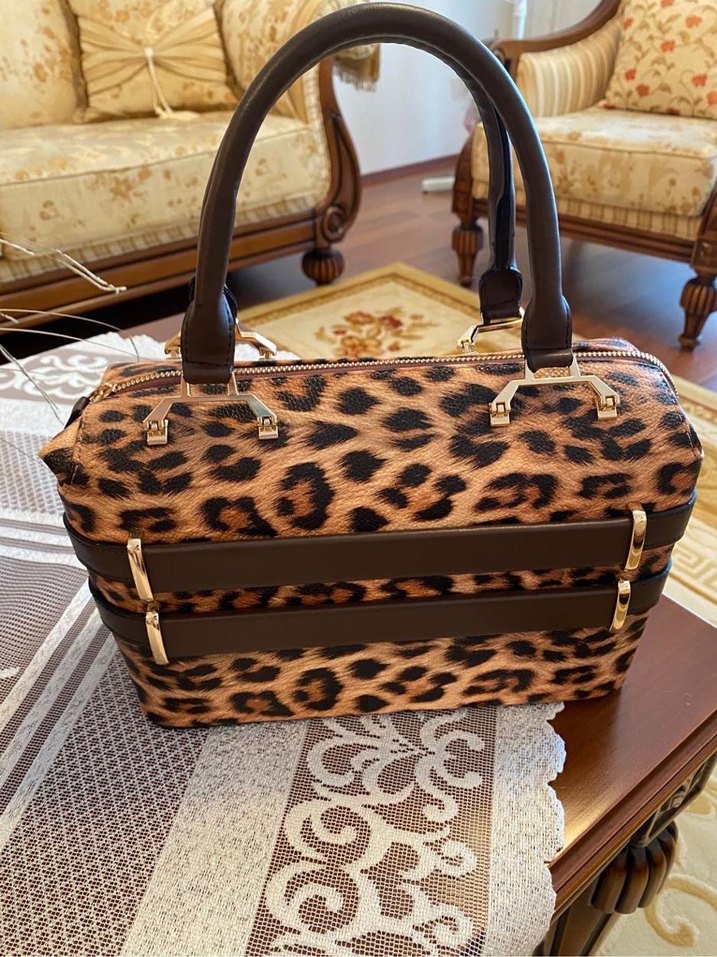 Seçil Leopar Desenli Deri Kadın Çanta