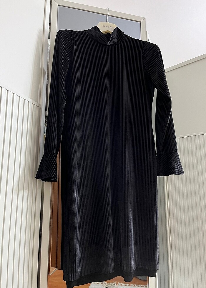 Seçil Kadife Fitilli görünümlü kolları fırfırlı elbise/tunik. Yeni gibidir.