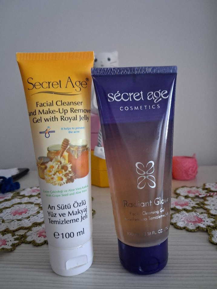 Secret Age markasına ait arı sütü özlü 100ml yüz temizleme ve makyaj temizleme jeli, cildi nazikçe arındırır. 2 sinide 2 veya 3 kez kullandım sıfır ayarındadır