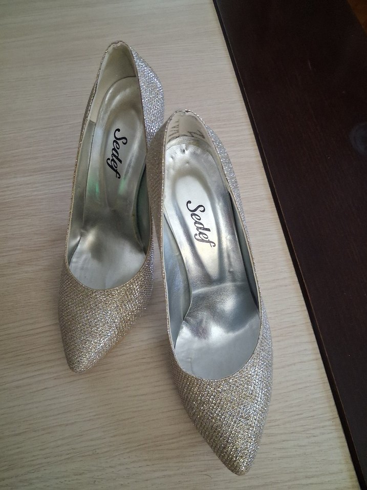 Sedef markalı, bej renkli, parlak simli ve yüksek abiye ayakkabı.. düğün ve özel geceler için uygundur. Rahat kauçuk tabanlı, çağdaş tasarım.10punt