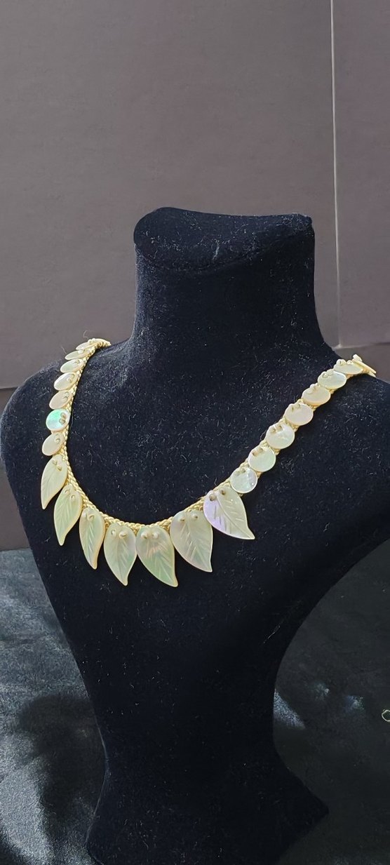 Atika 1930 yıllarına ait orjinal sedef el yapımı kolye nadir 44cm 17 gr