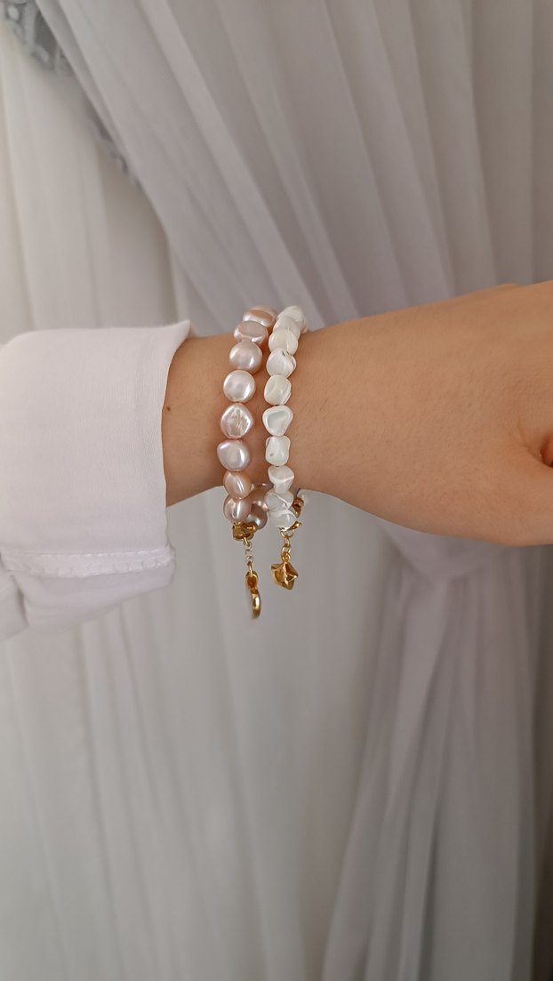 BEYAZ SEDEF TAŞLI YILDIZ SALLANTILI BİLEKLİK..