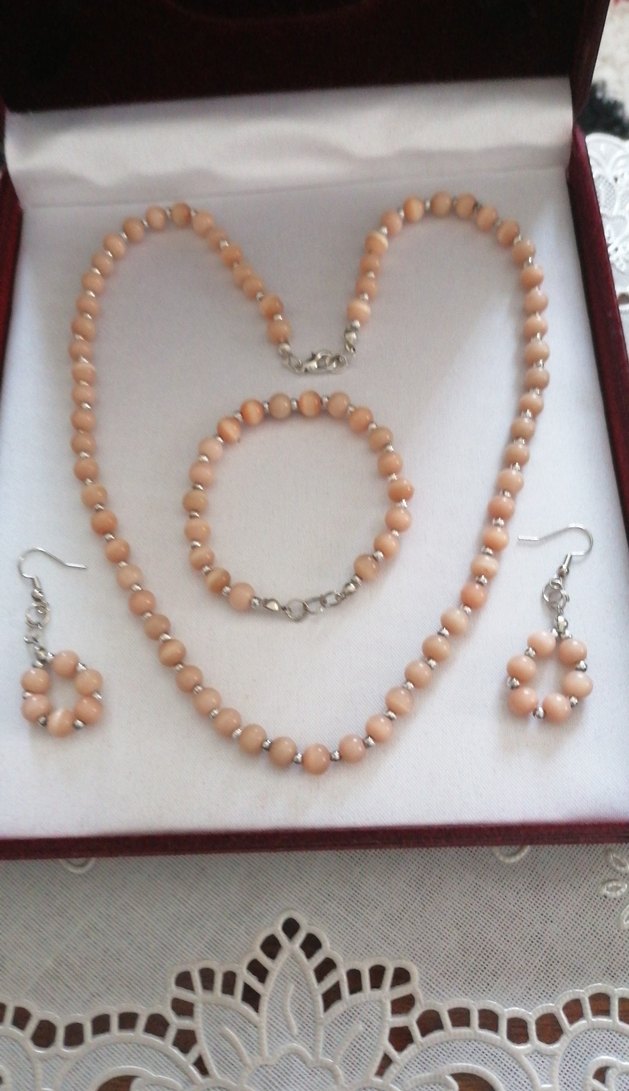 El emeği şık tasarımlı sedef taştan dekore edilmiş nadide yeni ürünüm sahibine hayırlı olsun inşallah kolye boy 55 cm bileklik boy 19 cm bileklik esnek misina ile yapılmıştır küpeler boy 6 cm