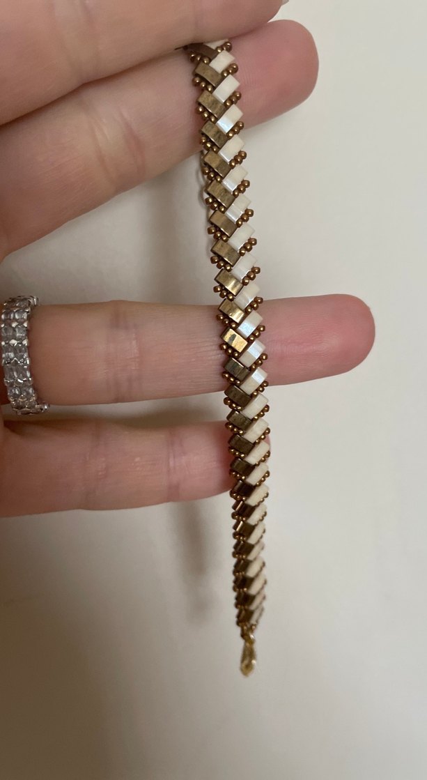 Parlak bej boncuklardan oluşan yılan desenli kadın bileklik, vintage ve bohem tarzıyla günlük kullanım için uygundur.