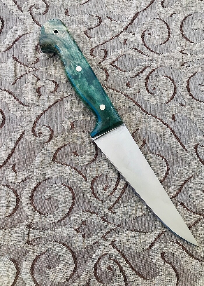 N690 KURBAN BIÇAĞI ( KEMİK SIYIRMA BIÇAĞI ) SERTLİK :58-59 HRC 14.5 CM NAMLU 28 CM TOPLAM BOY 6 MM pirinç Pimler KALINLIK: 2,5 mm Kabze stabilize mazel ağacı yeşil liner Kabzede suya dayanımı arttırmak için 5 kat Japon kaplama uygulaması yapılmıştır