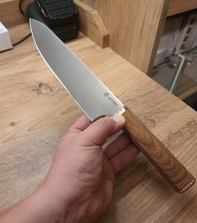 Profesyonel mutfak deneyimi arayan şef ve aşçıların vazgeçilmezi Atak Şef Bıçağı satışta. PPC enjeksiyon üstü soft su transfer kaplaması ile özel tasarımı, üstün performans sağlayan 2,5mm çelik mat yüzeyi ve el işçiliği ile iki kez bilenmiş parlak ağız tekniği sayesinde kusursuz keskinlik sunuyor. Paslanmaz çelik malzemesi ile uzun ömürlü dayanıklılık, geniş gövdesi ile yüksek basınç uygulayarak kolay kesim imkanı tanıyan bu profesyonel bıçak, sebze doğramadan et kesimine kadar her türlü mutfak işleminde mükemmel sonuçlar veriyor. Atak Knives'ın kaliteli el işçiliği ve son teknoloji birleşiminin ürünü olan bu şef bıçağı, hem profesyonel mutfaklarda hem de evde yemek yapmayı seven kullanıcılar için ideal seçim.