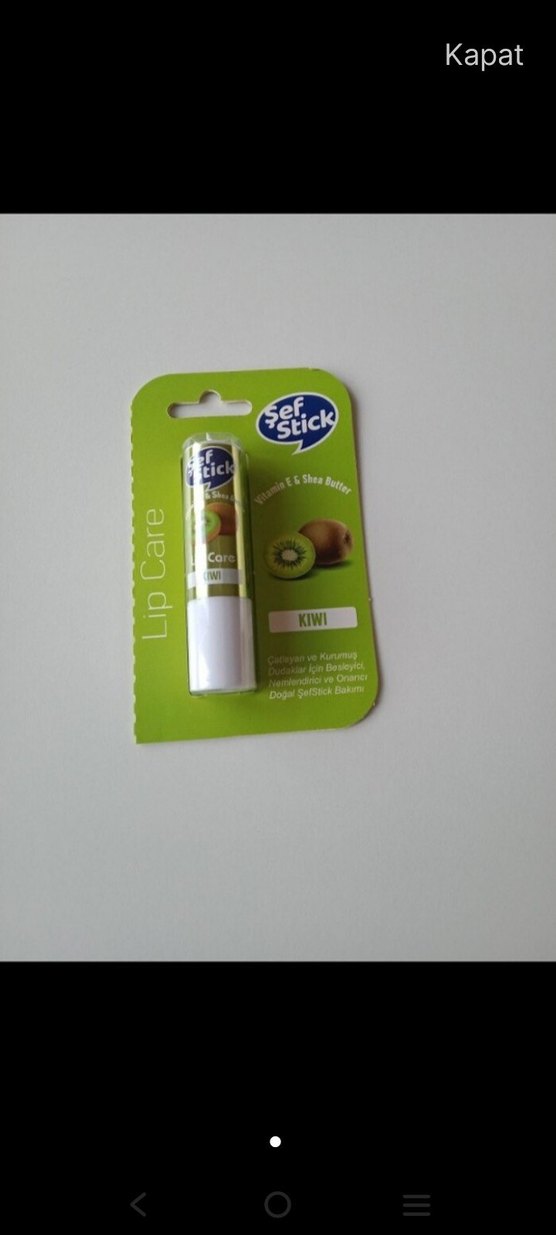 Şef Stick'in vitamin E ve shea yağı içeren, kivi aromalı, parlak yeşil dudak bakım sticki.