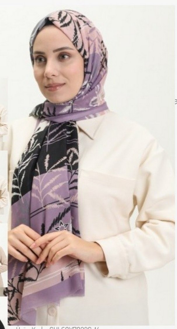 Diger markasının mor bohem şalı, yumuşak sentetik kumaştan drapeli tasarıma sahip, mütevazı ve şık bir görünüm sunar.