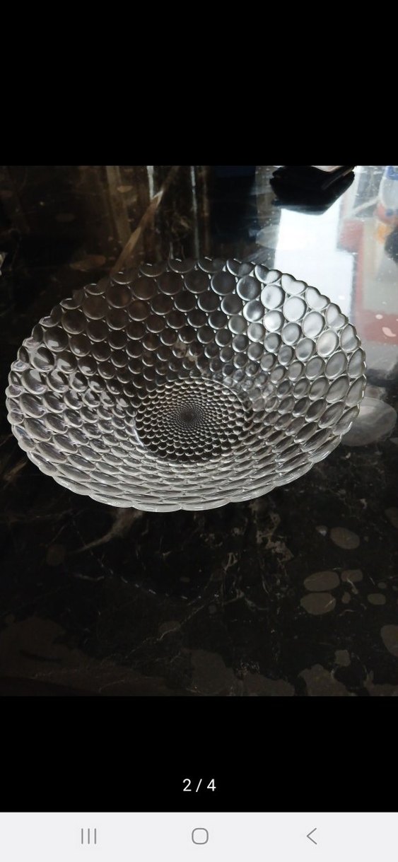 şeffaf yılan deseniyle süslenmiş bu çağdaş cam tabak, sofranıza modern ve dokulu bir görünüm kazandırır.